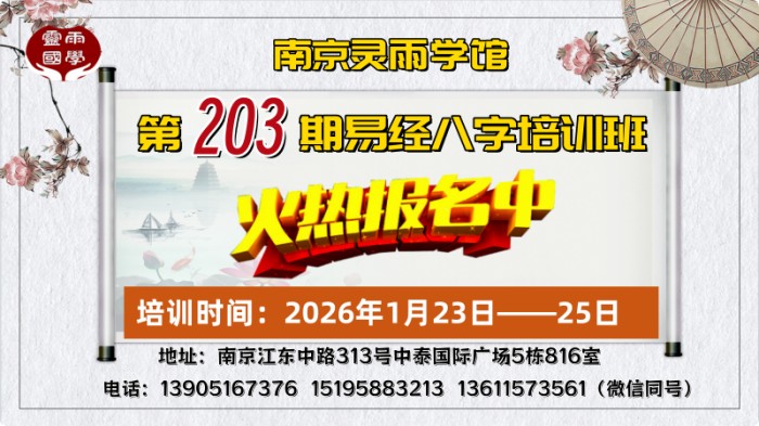 南京灵雨国学培训中心【第204期易经八字培训班】兹定于2026年3月6日正式开班授课!